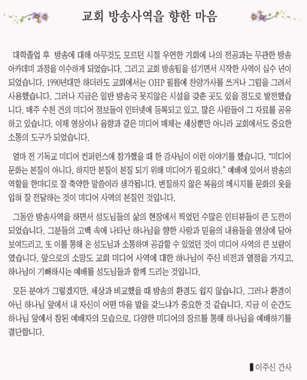 교회 방송 사역을 향한 마음_이주신 간사