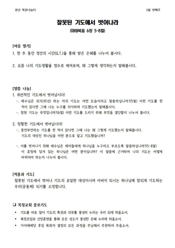 2023년 3월 26일 나눔터(목원용) 가야예배당