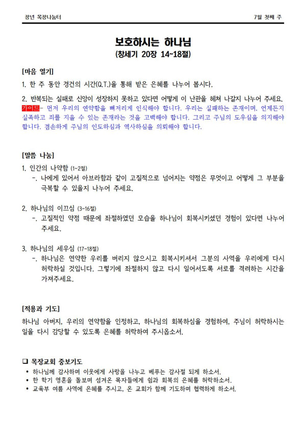 2022년 7월 3일 나눔터(목원용) 센텀예배당