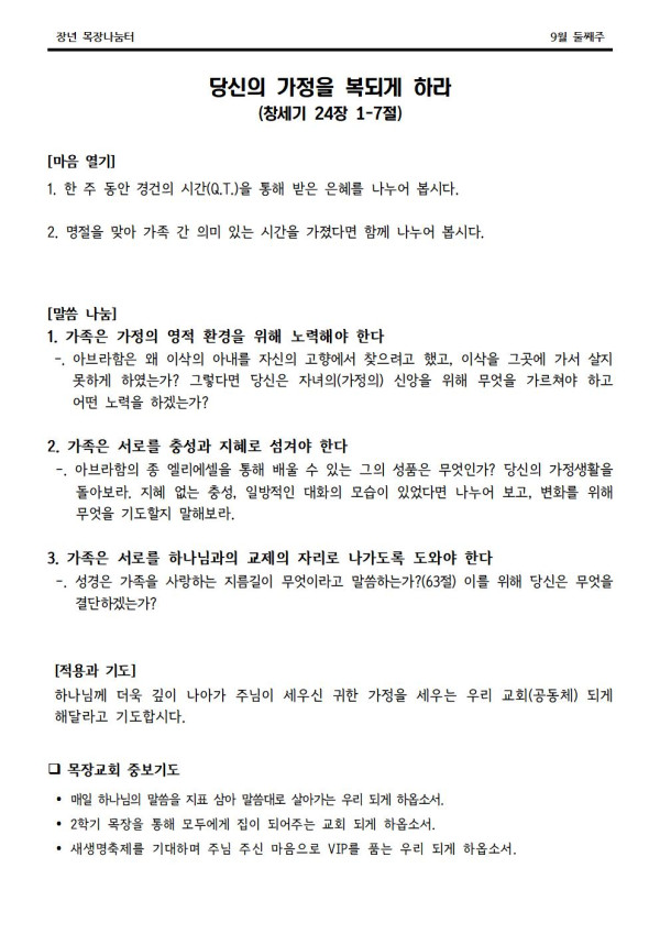 * 2022년 9월 11일 나눔터(목원용) 가야예배당