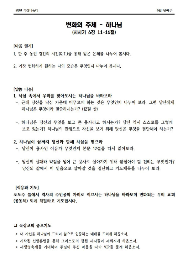 * 2022년 9월 25일 나눔터(목원용) 가야예배당