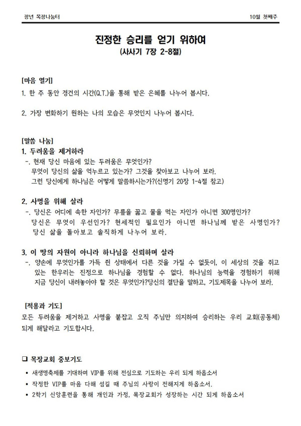 * 2022년 10월 2일 나눔터(목원용) 가야예배당