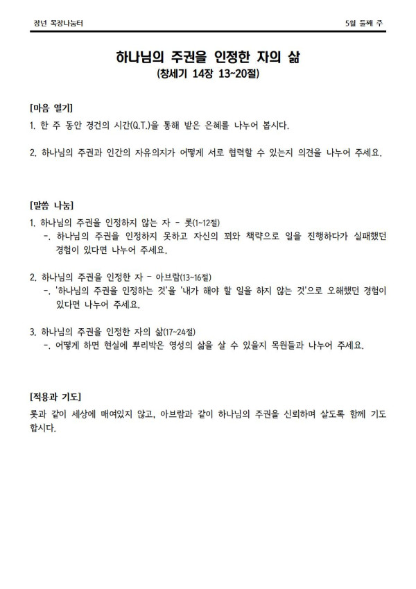 2022년 5월 8일 나눔터(목원용) 센텀예배당