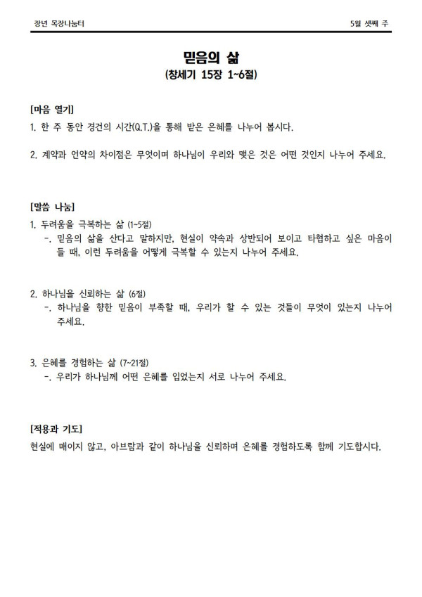2022년 5월 15일 나눔터(목원용) 센텀예배당