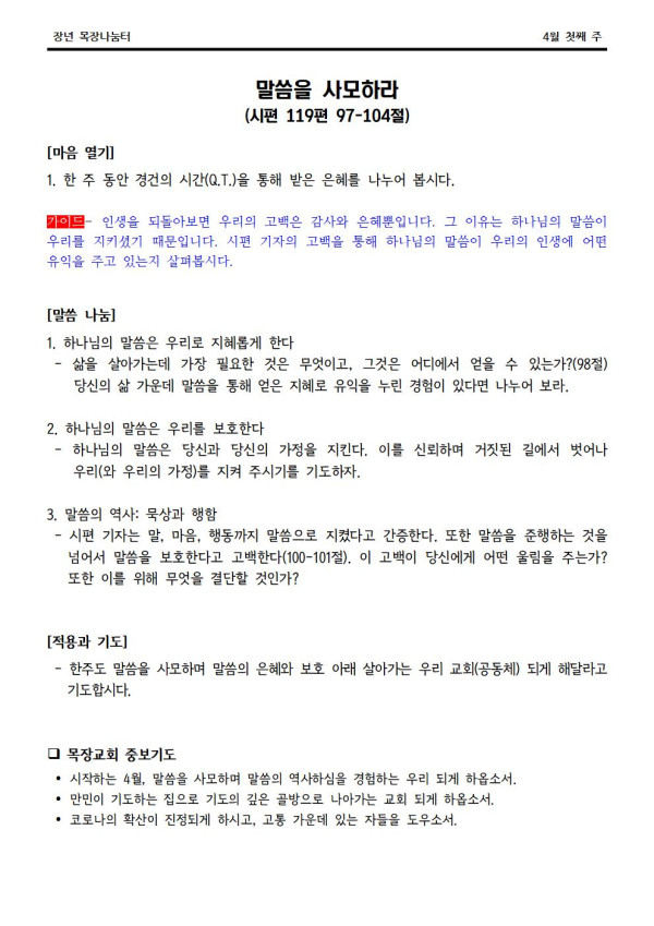 * 2022년 4월 3일 나눔터 (목원용) 가야예배당