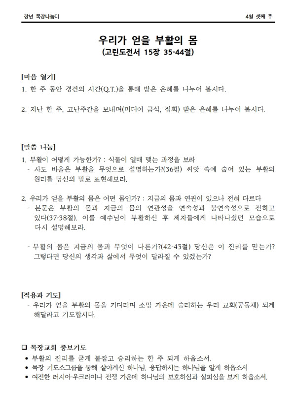 * 2022년 4월 17일 나눔터(목원용) 가야예배당