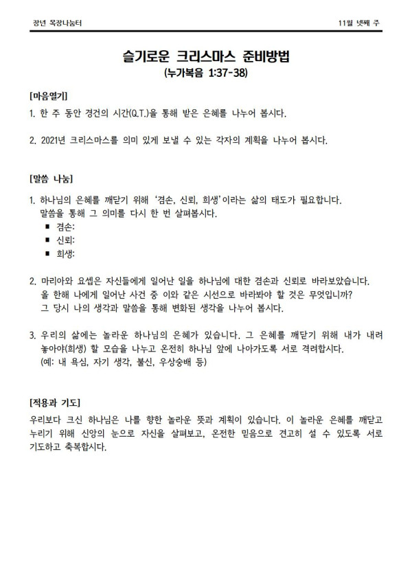 2021년 11월 28일 나눔터(목원용) 센텀예배당