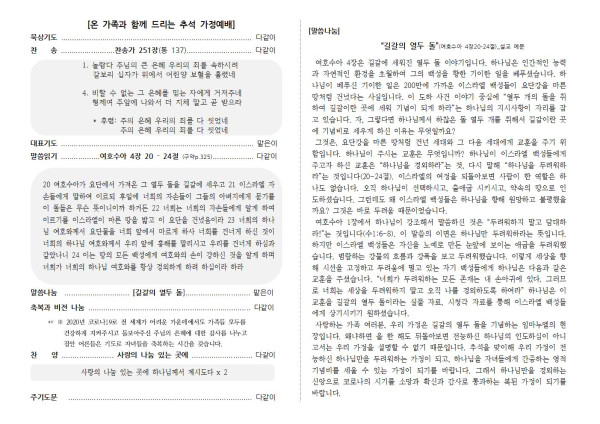 2020. 추석 가정 예배 순서지