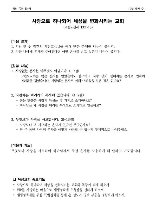 2024년 10월 20일 나눔터(목원용) 센텀예배당