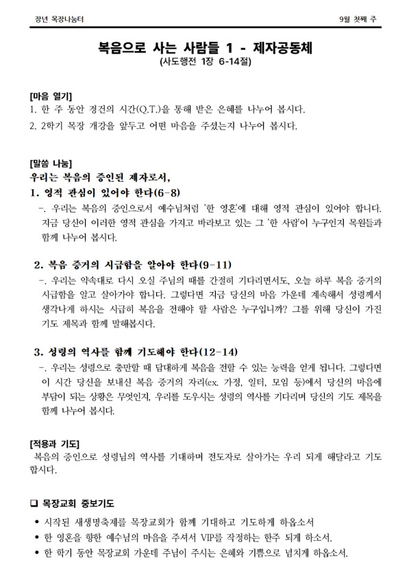 2024년 9월 1일 나눔터(목원용) 가야예배당