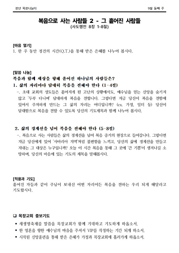 * 2024년 9월 8일 나눔터(목원용) 가야예배당