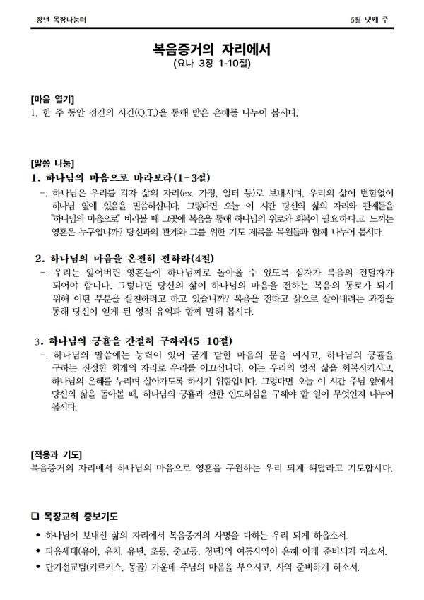 2024년 6월 23일 나눔터(목원용) 가야예배당