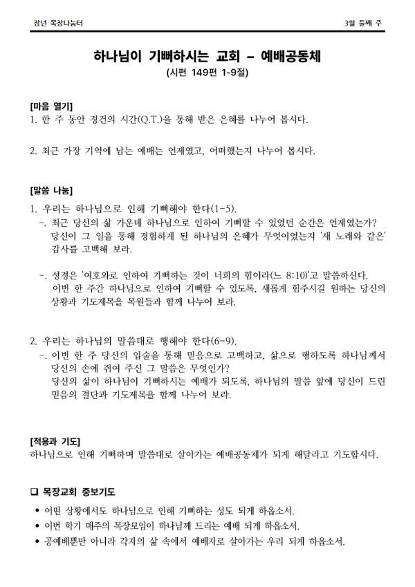 2024년 3월 10일 나눔터(목원용) 가야예배당