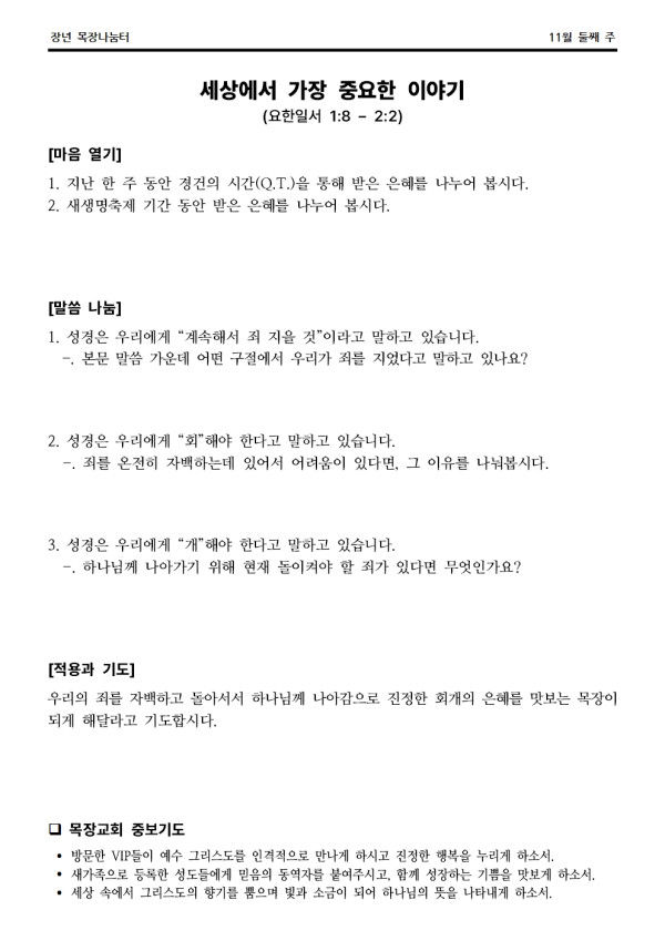 2023년 11월 12일 나눔터(목원용) 센텀예배당