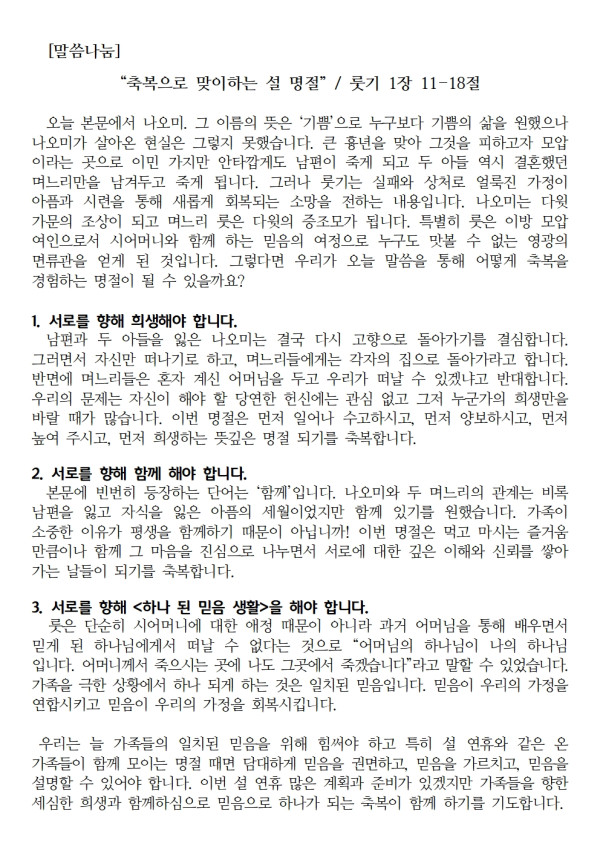 2024년 설 명절 가정예배_큰글자용 페이지 정보 작성자 관리지기 작성일24-02-03 14:34 조회8,873회 댓글0건 관련링크 이전글 다음글 목록 본문 2024년 설 명절 가정예배_큰글자용 댓글목록 등록된 댓글이 없습니다. 이전글 다음글 목록
