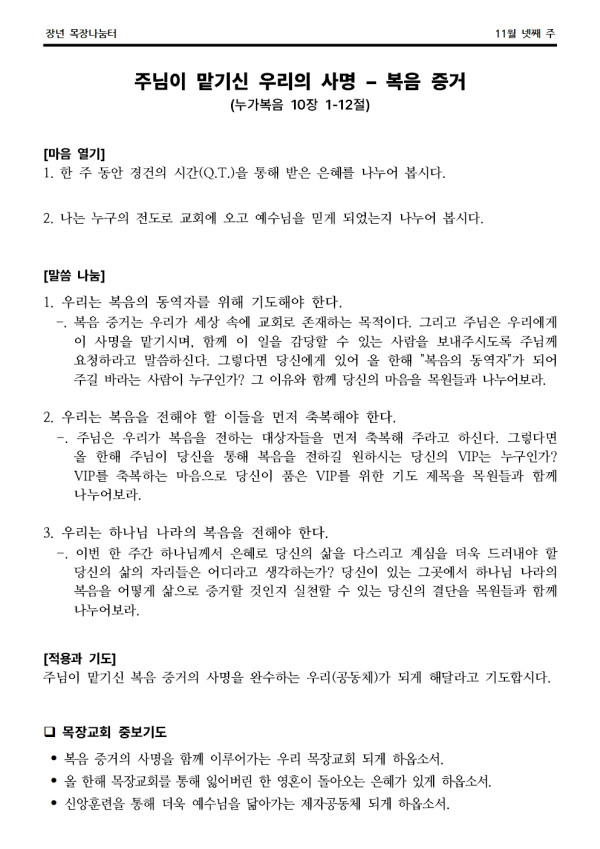 2024년 3월 3일 나눔터(목원용) 가야예배당