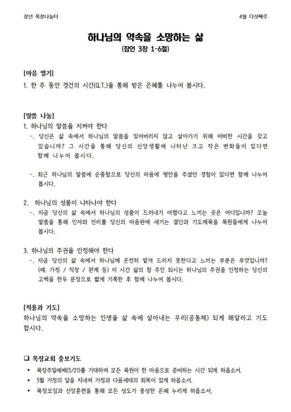 2023년 4월 30일 나눔터(목원용) 가야예배당