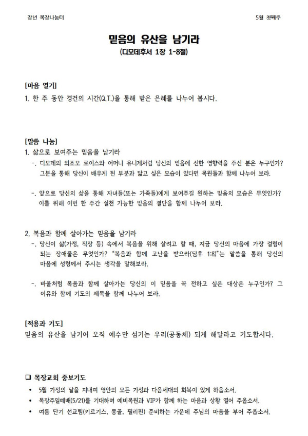 * 2023년 5월 7일 나눔터(목원용) 가야예배당