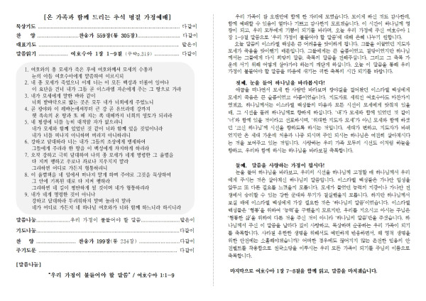 2025년 추석 명절 예배 순서지