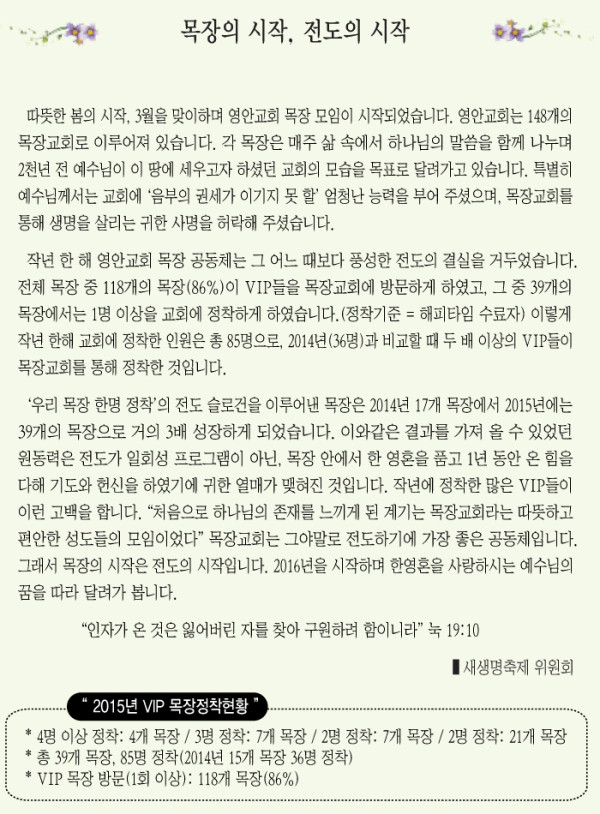 목장의 시작, 전도의 시작_새생명축제 위원회