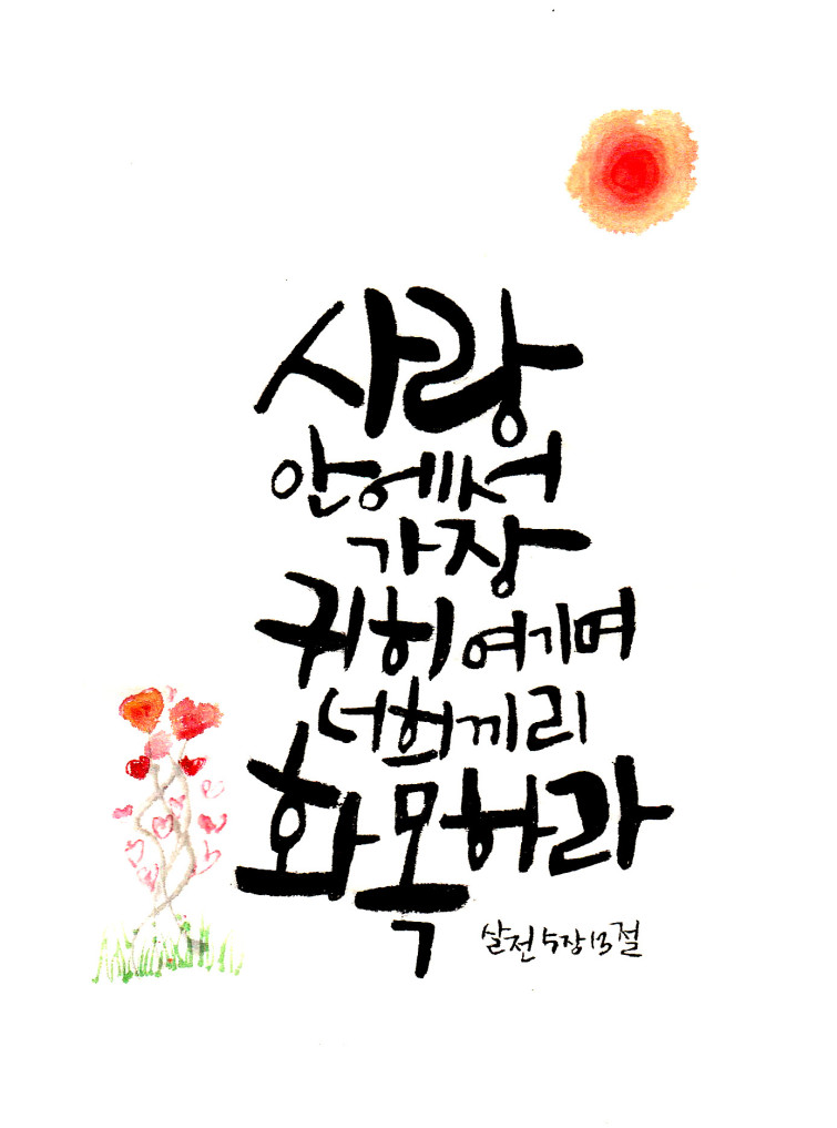 신앙훈련 | 영안교회 캘리그래피반 '캘리야! 노올자" 제자들의 작품을 올려봅니다. 페이지 정보 작성자 손병호 작성일16-06-14 15:43 조회19,534회 댓글0건 이전글 다음글 목록 본문 지난 3개월간 각고의 노력으로 이루어낸 작품들입니다. 지금은 말씀을 묵상하며 주제별 성경암송 60구절을 열심히 쓰며 암송하는 제자들의 모습이정말 아름답고 귀한 도전이 됩니다. 댓글목록 등록된 댓글이 없습니다. 이전글 다음글 목록