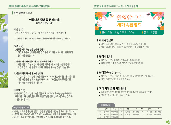 2024년 3월 10일 주보 (센텀예배당) 페이지 정보 작성자 관리지기 작성일24-03-09 11:44 조회3,083회 댓글0건 관련링크 목록 본문 2024년 3월 10일 주보 (센텀예배당) 댓글목록 등록된 댓글이 없습니다. 목록