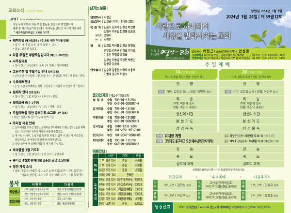 2024년 3월 24일 주보 (가야예배당) 페이지 정보 작성자 관리지기 작성일24-03-23 11:06 조회3,092회 댓글0건 관련링크 목록 본문 2024년 3월 24일 주보 (가야예배당) 댓글목록 등록된 댓글이 없습니다. 목록