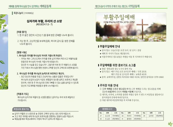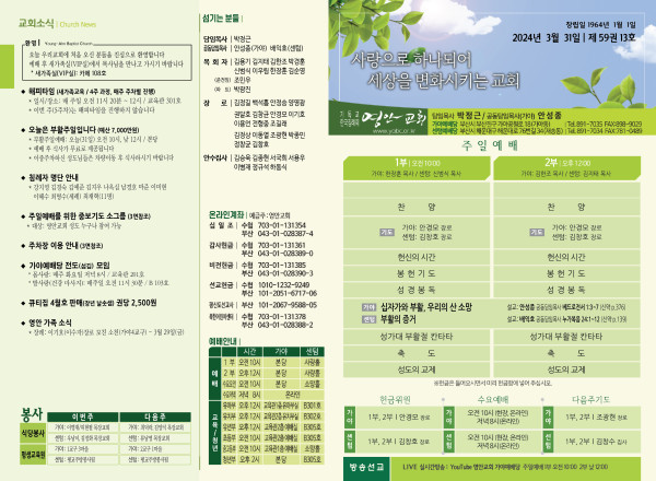 2024년 3월 31일 주보 (가야예배당) 페이지 정보 작성자 관리지기 작성일24-03-30 11:13 조회2,895회 댓글0건 관련링크 목록 본문 2024년 3월 31일 주보 (가야예배당) 댓글목록 등록된 댓글이 없습니다. 목록