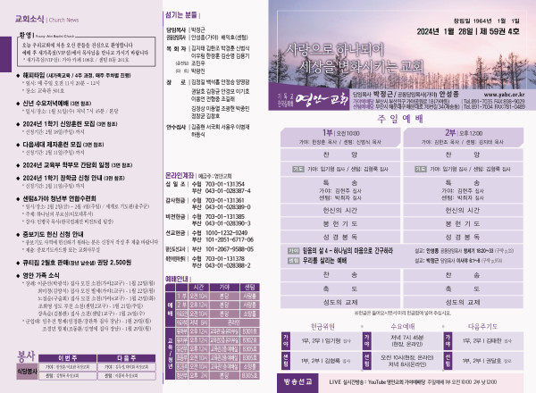 2024년 1월 28일 주보 (가야예배당) 페이지 정보 작성자 관리지기 작성일24-01-27 11:07 조회3,077회 댓글0건 관련링크 목록 본문 2024년 1월 28일 주보 (가야예배당) 댓글목록 등록된 댓글이 없습니다. 목록