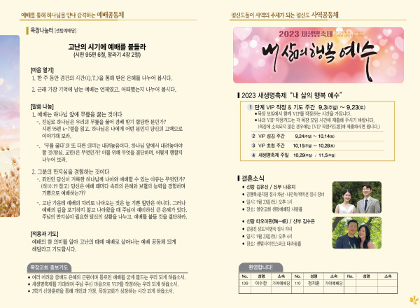 2023년 9월 17일 주보 (센텀예배당) 페이지 정보 작성자 관리지기 작성일23-09-16 10:15 조회3,223회 댓글0건 관련링크 목록 본문 2023년 9월 17일 주보 (센텀예배당) 댓글목록 등록된 댓글이 없습니다. 목록