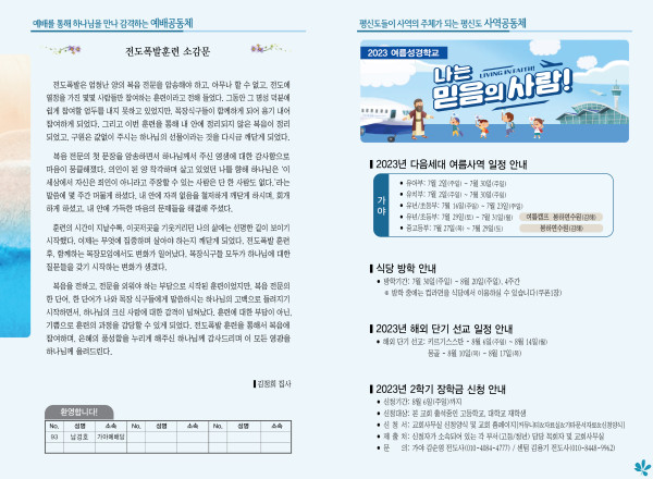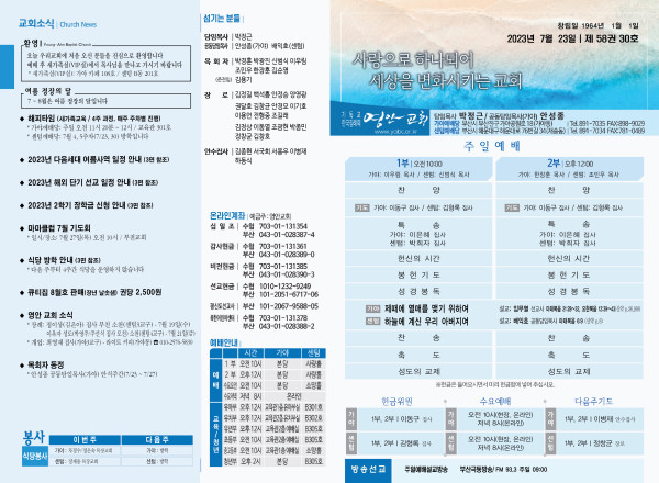 2023년 7월 23일 주보 (가야예배당) 페이지 정보 작성자 관리지기 작성일23-07-22 10:47 조회3,478회 댓글0건 관련링크 목록 본문 * 2023년 7월 23일 주보 (가야예배당) 댓글목록 등록된 댓글이 없습니다. 목록
