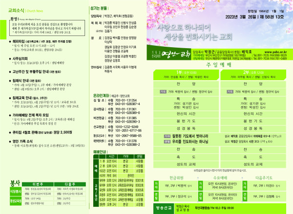 2023년 3월 26일 주보 (센텀예배당) 페이지 정보 작성자 관리지기 작성일23-03-25 11:09 조회3,694회 댓글0건 관련링크 목록 본문 2023년 3월 26일 주보 (센텀예배당) 댓글목록 등록된 댓글이 없습니다. 목록