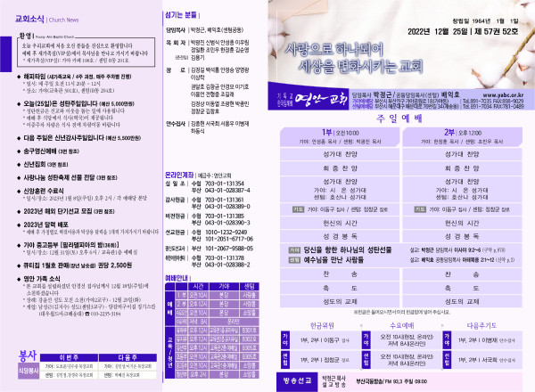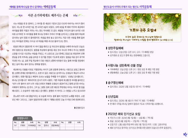 2022년 12월 25일 주보 페이지 정보 작성자 관리지기 작성일22-12-24 10:18 조회4,822회 댓글0건 관련링크 목록 본문 * 2022년 12월 25일 주보 댓글목록 등록된 댓글이 없습니다. 목록