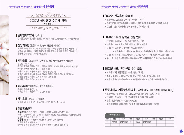 2023년 1월 8일 주보 (센텀예배당) 페이지 정보 작성자 관리지기 작성일23-01-07 11:04 조회4,436회 댓글0건 관련링크 목록 본문 2023년 1월 8일 주보 (센텀예배당) 댓글목록 등록된 댓글이 없습니다. 목록
