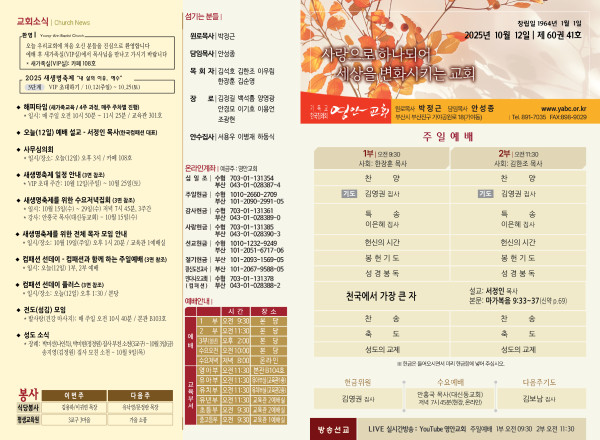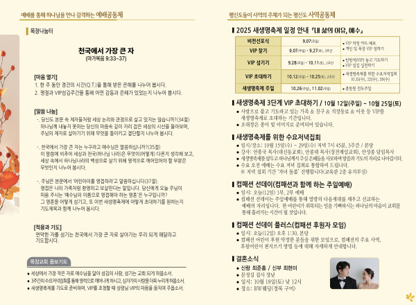 2025년 10월 12일 주보 페이지 정보 작성자 관리지기 작성일25-10-11 10:27 조회1,203회 댓글0건 관련링크 목록 본문 2025년 10월 12일 주보 댓글목록 등록된 댓글이 없습니다. 목록