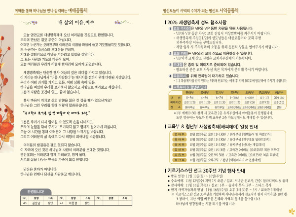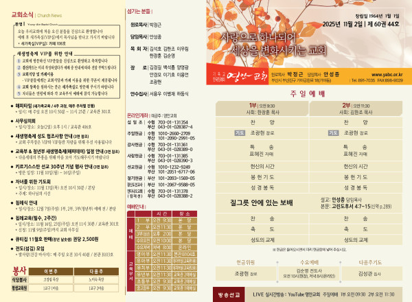 2025년 11월 2일 주보 페이지 정보 작성자 관리지기 작성일25-11-01 10:56 조회1,041회 댓글0건 관련링크 목록 본문 2025년 11월 2일 주보 댓글목록 등록된 댓글이 없습니다. 목록