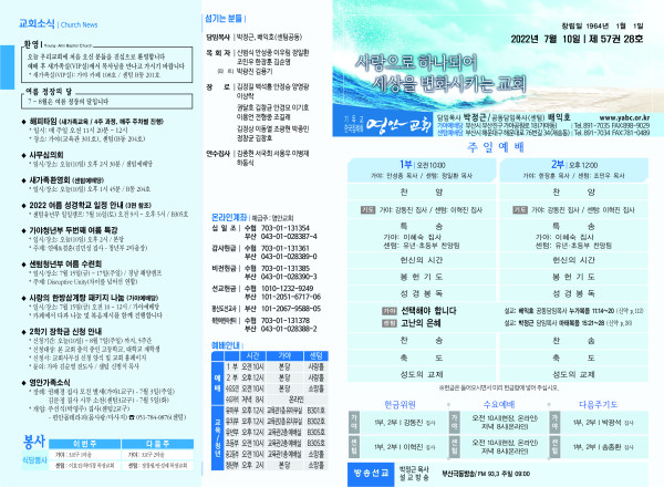 2022년 7월 10일 주보 페이지 정보 작성자 관리지기 작성일22-07-09 11:31 조회4,891회 댓글0건 관련링크 목록 본문 * 2022년 7월 10일 주보 댓글목록 등록된 댓글이 없습니다. 목록