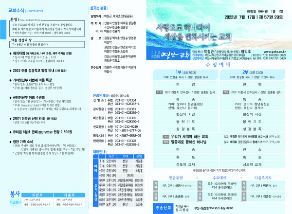 2022년 7월 17일 주보 페이지 정보 작성자 관리지기 작성일22-07-16 12:41 조회4,708회 댓글0건 관련링크 목록 본문 * 2022년 7월 17일 주보 댓글목록 등록된 댓글이 없습니다. 목록