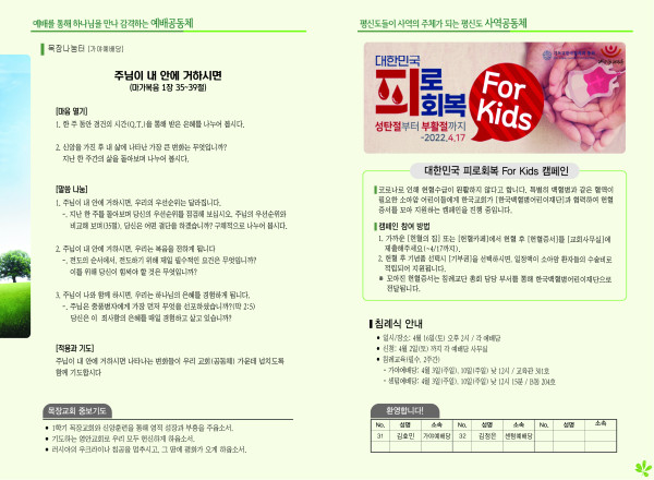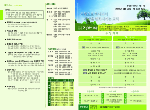 2022년 3월 20일 주보 (가야예배당) 페이지 정보 작성자 관리지기 작성일22-03-19 11:53 조회5,244회 댓글0건 관련링크 목록 본문 *2022년 3월 20일 주보 (가야예배당) 댓글목록 등록된 댓글이 없습니다. 목록