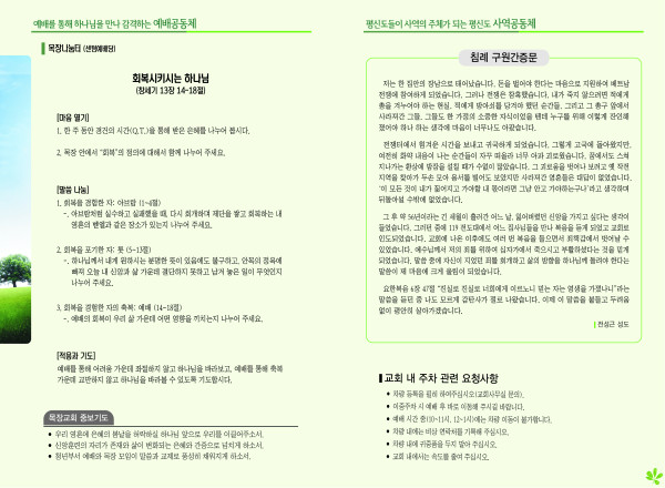 2022년 4월 24일 주보 (센텀예배당) 페이지 정보 작성자 관리지기 작성일22-04-23 11:44 조회4,713회 댓글0건 관련링크 목록 본문 2022년 4월 24일 주보 (센텀예배당) 댓글목록 등록된 댓글이 없습니다. 목록