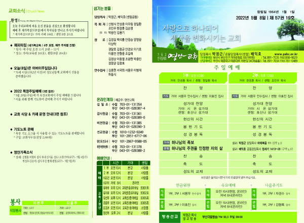2022년 5월 8일 주보 (가야예배당) 페이지 정보 작성자 관리지기 작성일22-05-07 11:37 조회4,821회 댓글0건 관련링크 목록 본문 * 2022년 5월 8일 주보 (가야예배당) 댓글목록 등록된 댓글이 없습니다. 목록