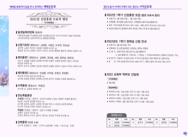 2022년 1월 23일 주보 (가야예배당) 페이지 정보 작성자 관리지기 작성일22-01-22 11:46 조회5,286회 댓글0건 관련링크 목록 본문 * 2022년 1월 23일 주보 (가야예배당) 댓글목록 등록된 댓글이 없습니다. 목록