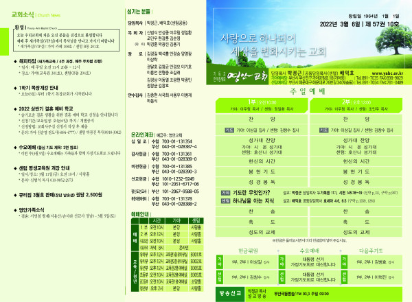 2022년 3월 6일 주보 (가야예배당) 페이지 정보 작성자 관리지기 작성일22-03-05 11:40 조회5,072회 댓글0건 관련링크 목록 본문 2022년 3월 6일 주보 (가야예배당) 댓글목록 등록된 댓글이 없습니다. 목록