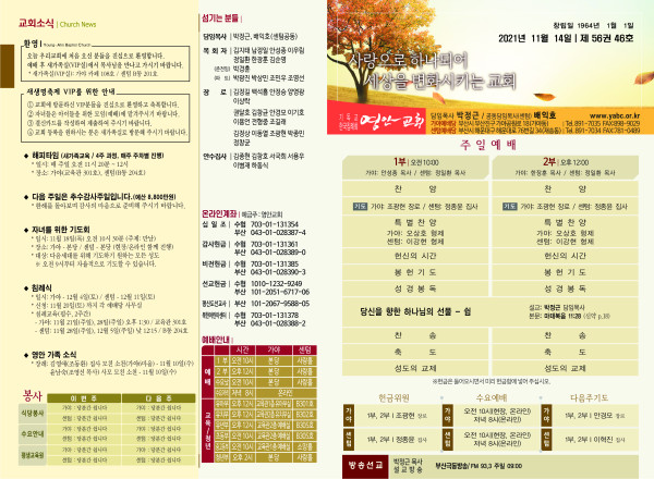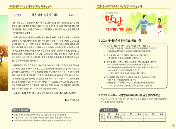 2021년 11월 14일 주보 페이지 정보 작성자 관리지기 작성일21-11-13 11:16 조회5,823회 댓글0건 관련링크 목록 본문 *2021년 11월 14일 주보 댓글목록 등록된 댓글이 없습니다. 목록