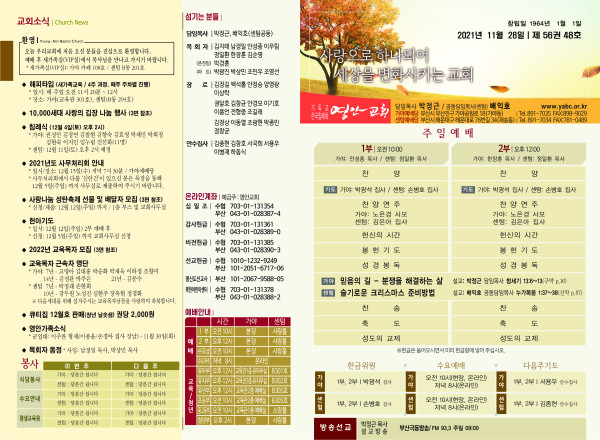 2021년 11월 28일 주보 (가야예배당) 페이지 정보 작성자 관리지기 작성일21-11-27 12:30 조회5,898회 댓글0건 관련링크 목록 본문 2021년 11월 28일 주보 (가야예배당) 댓글목록 등록된 댓글이 없습니다. 목록
