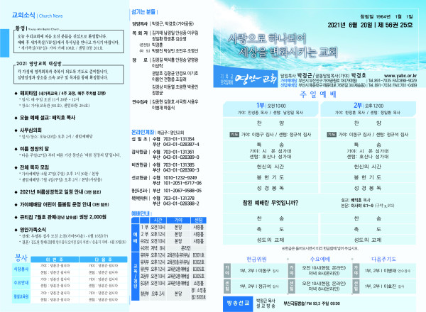 2021년 6월 20일 주보 페이지 정보 작성자 관리지기 작성일21-06-19 11:04 조회6,333회 댓글0건 관련링크 목록 본문 *2021년 6월 20일 주보 댓글목록 등록된 댓글이 없습니다. 목록