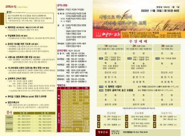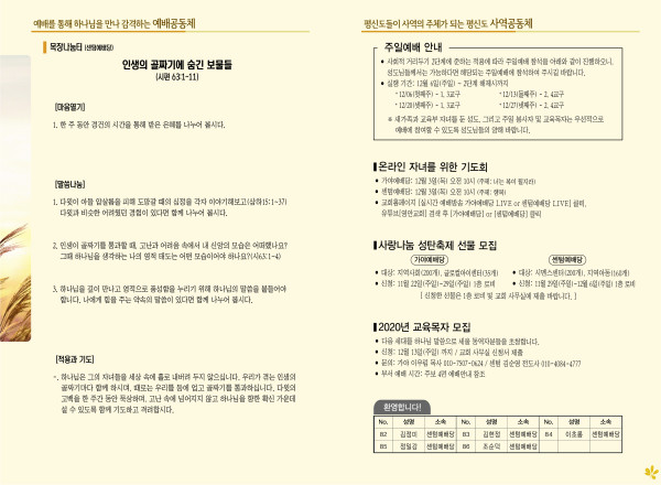 2020년 11월 29일 주보(센텀예배당) 페이지 정보 작성자 관리지기 작성일20-11-28 12:59 조회6,773회 댓글0건 관련링크 목록 본문 2020년 11월 29일 주보(센텀예배당) 댓글목록 등록된 댓글이 없습니다. 목록