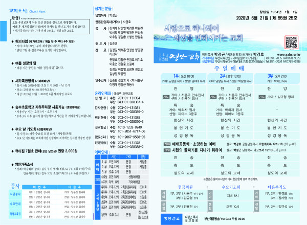 2020년 6월 21일 주보 페이지 정보 작성자 관리지기 작성일20-06-20 11:36 조회7,536회 댓글0건 관련링크 목록 본문 2020년 6월 21일 주보 댓글목록 등록된 댓글이 없습니다. 목록