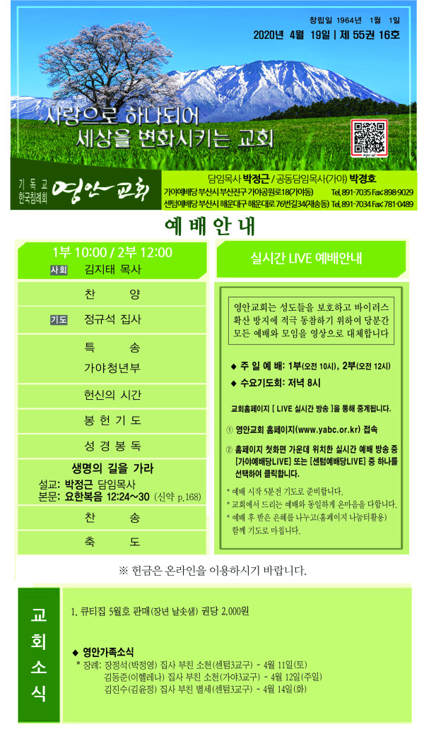 2020년 4월 19일 주보 페이지 정보 작성자 관리지기 작성일20-04-18 11:26 조회7,954회 댓글0건 관련링크 목록 본문 2020년 4월 19일 주보 댓글목록 등록된 댓글이 없습니다. 목록