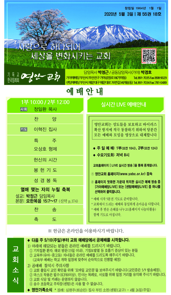 2020년 5월 3일 주보 페이지 정보 작성자 관리지기 작성일20-05-02 13:41 조회7,965회 댓글0건 관련링크 목록 본문 2020년 5월 3일 주보 댓글목록 등록된 댓글이 없습니다. 목록